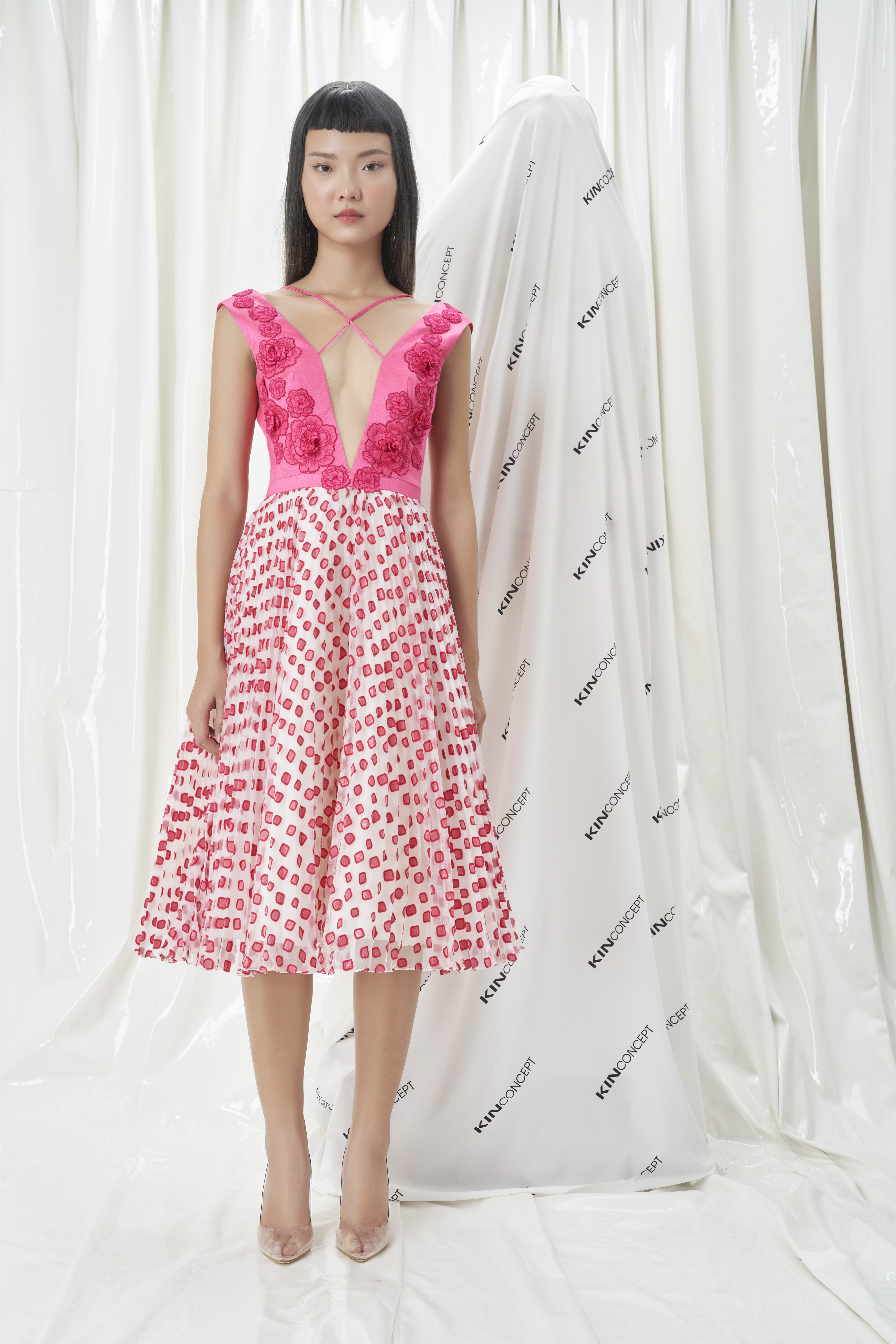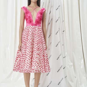 • Đầm xoè hồng xếp li